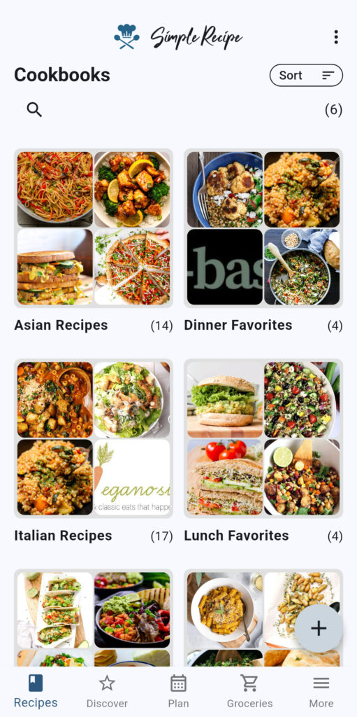 One of the main benefits of the cookbook feature in the app is to be able organize recipes into collections. You can organize your recipes any way that you like. You can create cookbooks for types of meals, types of courses, types of ingredients, types of food, dietary needs, and more. The cookbooks you create and the recipes you add to them are entirely up to you.